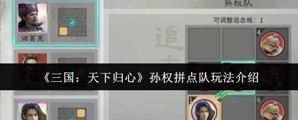 以上就是pk游戏网小编整理带来的三国天下归心孙权拼点队玩法介绍,更多相关游戏攻略,请关注pk游戏网!