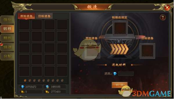 3、转移:将材料装备的精炼等级转移到目标装备。