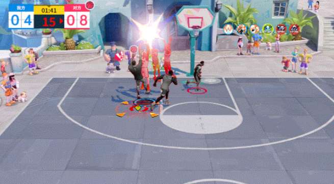 成功触发“两败俱伤”后,2米范围内的敌方单位在1.5秒内将更容易被封盖。但需注意,该技能存在代价:一旦抢断成功,自身在下一个进攻回合中的投篮命中率将会下降,属于用短期火力换取关键球权的战术选择。在进攻端,他的“进攻大旗”技能能根据队友所处区域激活对应增益——中距离区域提升中投命中率,外线区域提高三分命中概率,每次激活还能重置突破技与终结技的冷却至0秒,使其能够连续发动攻势。