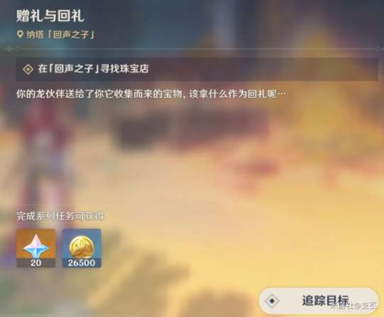 旅行者们大家好,本贴将为大家带来纳塔世界任务——赠礼与回礼攻略