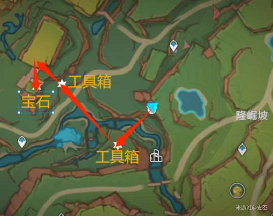 对话结束,附身匿叶龙,利用卷叶符印,获取工具箱和宝石