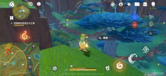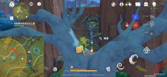 第三处在树顶,交互调查,获取宝石