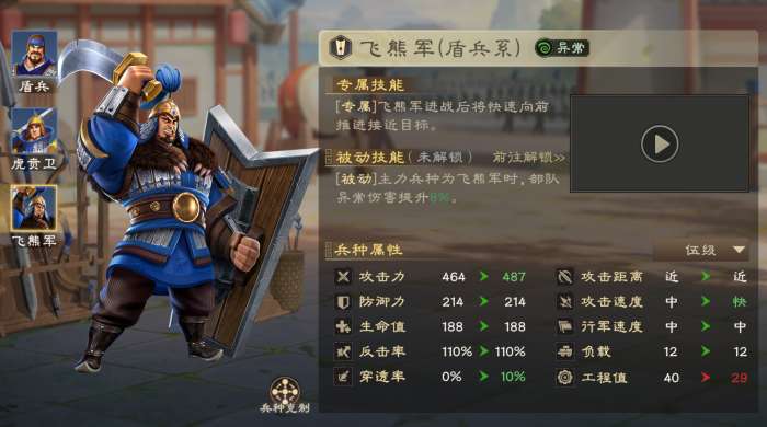 飞熊军在近战后可快速接近目标,可以更好的黏住弓兵阵容,被动技能解锁后可提升异常伤害,在多增伤的情况下,持久作战能打出更高伤害。