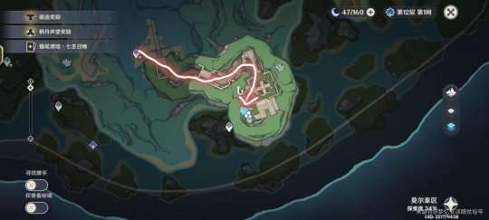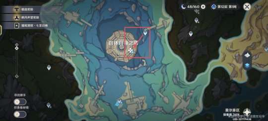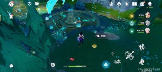 第五个很简单,我们从传送锚点跳下水后往下游,在那个世界任务中塔沉在水中的外围可以看到,还有个摩拉袋子。这个比较简单。
