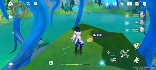 第一个我们直接前往湖中垂柳的下方岩石上!直接爬上去就可以看到!轻轻松松的就可以获得。因为我是做完了世界任务,所以我这里是没有风的!