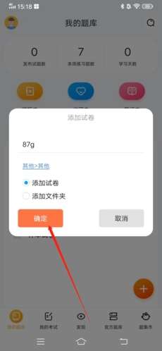 2、输入试卷的名称与类型,点击确定;