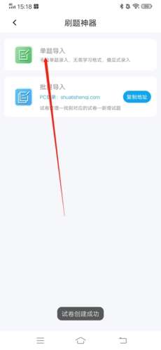 3、试卷创建成功后,点击上方的“单题导入”;