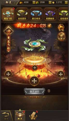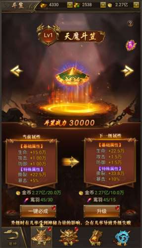 2、异宝:有六件特殊的异宝,提升不同的异宝能获取不同的属性,注意了提升异宝是有一定的风险喔~