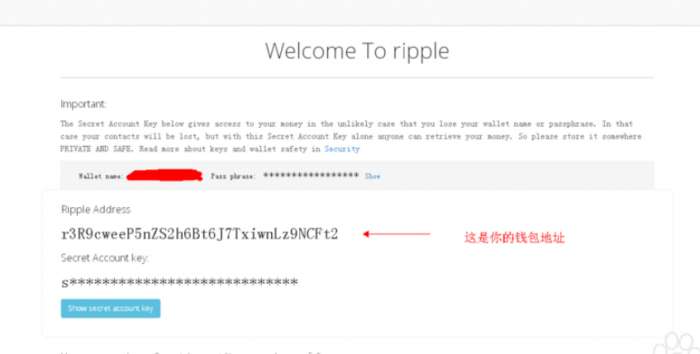 第五步:查看瑞波币钱包地址