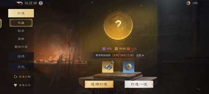 消耗材料打造装备,品质越高产出珍品概率越大: