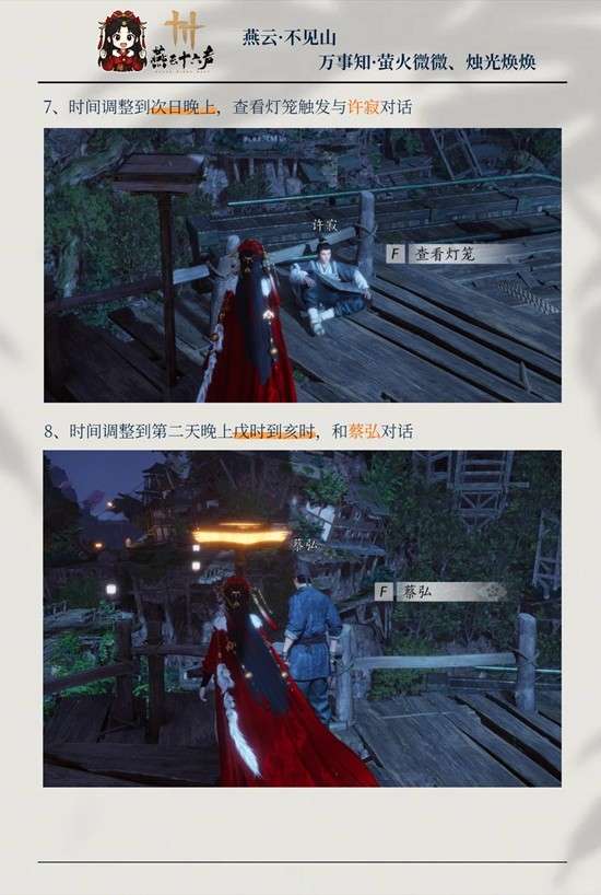 7、时间调整到次日晚上,查看灯笼触发与许寂对话