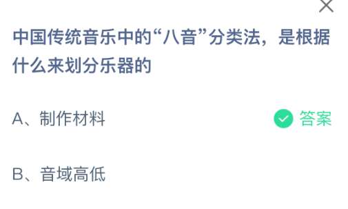 以上就是中国传统音乐中的“八音”分类法,是根据什么来划分乐器的,支付宝蚂蚁庄园2025年12月22答案最新,更多精彩内容,请点击关注pk游戏网更新!
