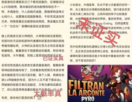 最后就是某位舅舅爆料消息的汇总了,具体见下图,总的来说就是,4.5千织专武能让阿贝多吃肉,执行官中的少女是冰系,木偶是草系角色,女士也会有重生剧情,据说和托帕长得很像,不过版本跨度大,保不保真就不知道了,各位小伙伴们还需理性观看哈!