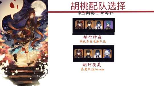 胡行钟夜:该队胡桃作为战场C,夜兰副C,行秋钟离辅助。夜兰行秋大招后台挂水,钟离开盾以免胡桃暴毙,最后切胡桃开战技重击。练的好的话,胡桃重击蒸发可以达到10w+