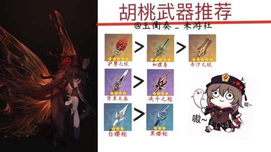 和濮鸢:武器词条加暴击率,可以很好的弥补胡桃的暴击率不够的问题,特效是普攻六下获得攻击力加成,对胡桃没多大用处。不过暴击率和高白值对胡桃还是很稀有的东西(常驻/武器池祈愿获取)