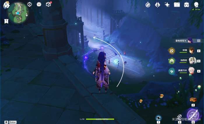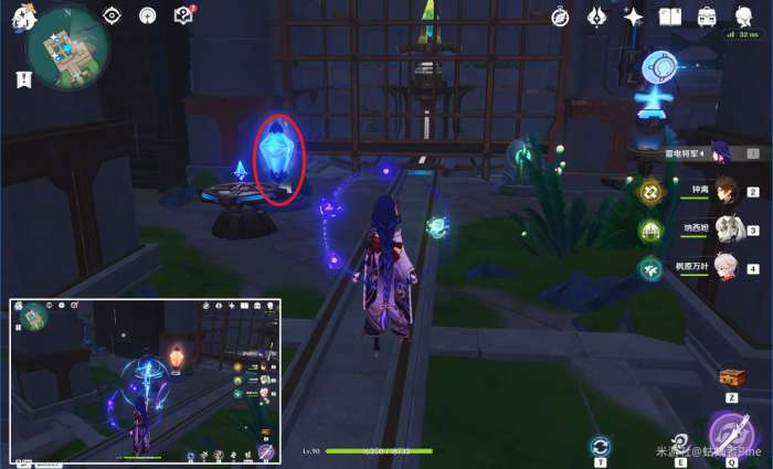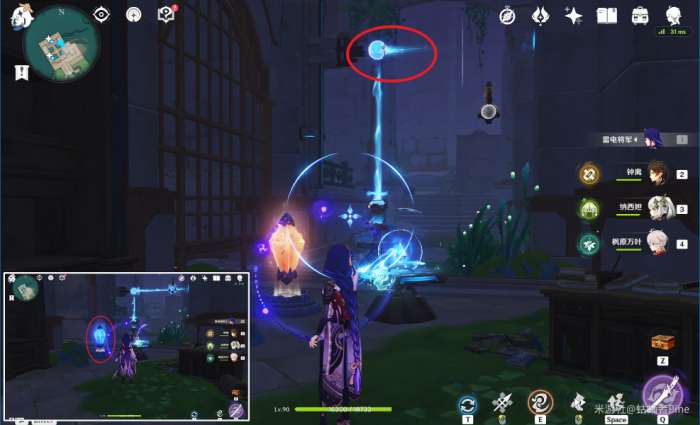 6,当光束高过卡扣后,按E停止,普攻晶体关闭卡扣即可