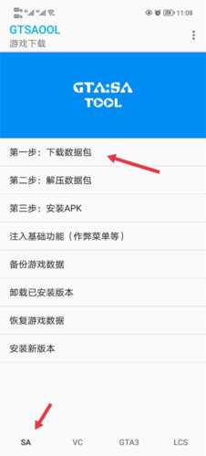 软件提交 专题合集 热门手游打开GTSAOOL后,进入功能界面选择“游戏下载”选项,在列表中找到目标游戏(如GTASA或GTAVC),点击对应安装包并选择下载路线(如路线1),等待下载完成后按提示完成安装,即可启动游戏体验。该工具支持多版本资源整合,下载过程稳定且提供详细进度提示。