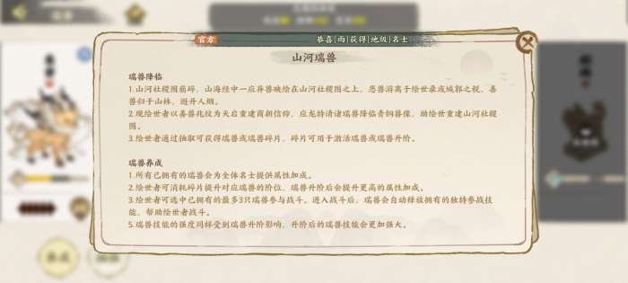 1.瑞兽需要靠瑞兽拜贴来抽取碎片,集够了碎片就可以激活相应的瑞兽。