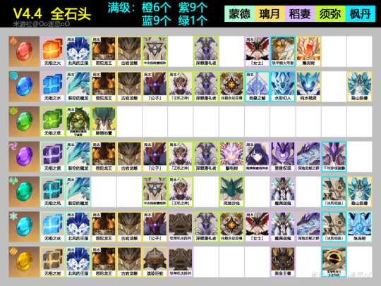 【浅蓝字体】一个角色满等级需要石头:橙色6个、紫色9个、蓝色9个、绿色1个