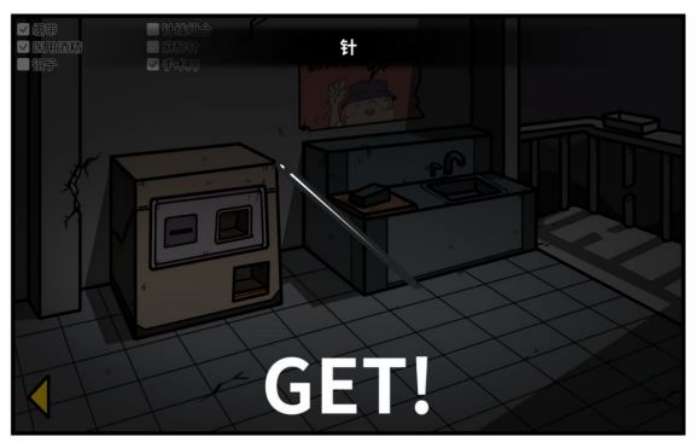 进入三楼左侧房间,收集树上的桑叶,用千斤顶挡在图中位置,上下摇动把手撬起墙体,捡起剪刀