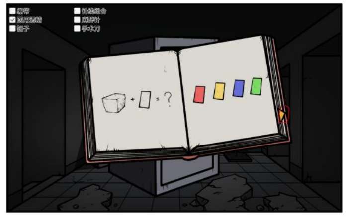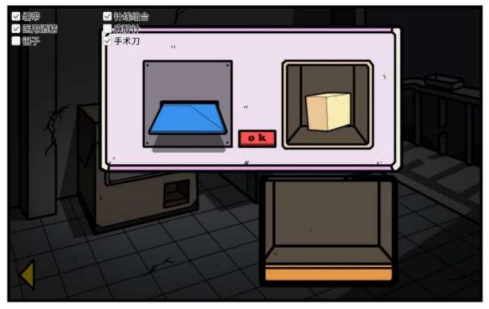 老婆的腿受伤了,把老婆背到附近的一家废弃医院进行检查,发现老婆大腿中枪,需要进行手术。所需材料为绷带、针线、酒精、麻醉针、镊子、手术刀,需要找齐这些并取到黄色卡片