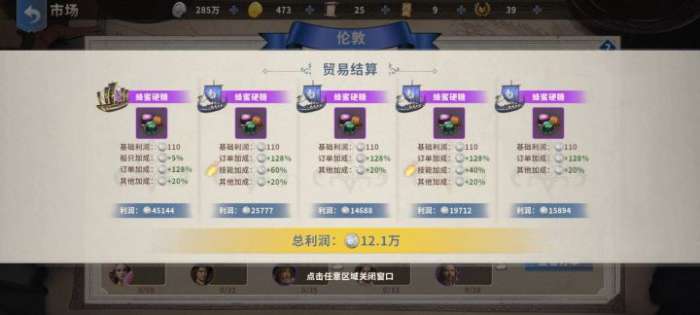 最多可以4个订单加成,具体加成点详情可看,订单也获取材料的重要途径,建议现从合成里面看下一阶段要什么材料,一天可以免费刷30下后面10金币一次也不贵建议刷到材料加成都能吃上的订单再跑,除了订单还有船有加成,如图,船分为利润加成合暴击加成,其中利润船为稳定固定加成,暴击船比同级利润船魅力较高,可以配合暴击利润加成效果的船长一起用,毕竟其他传暴击是0压根没法触发,看你有什么船长谨慎选择,造船需要大量材料而且没法回头。