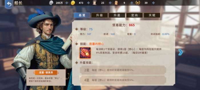 船长技能分为3大类,魅力加成,装载加成,结算加成如图,建议魅力加成的扔一队,可以左脚踩右脚很离谱,装载和结算加成的扔一队收益最大,紫色的船长都是装载为主。