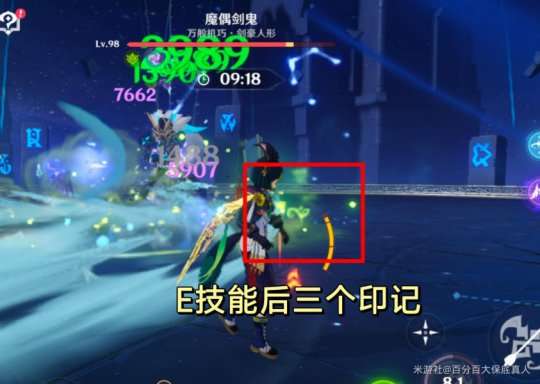注意:开启E技能后12秒内不用或者切换人物下场三个印记会立刻消失。