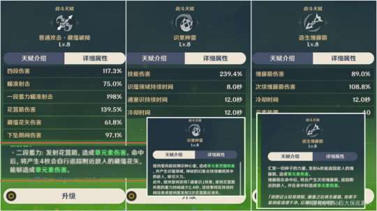一般我们用二段蓄力攻击,总倍率就是华蓥箭139.5%+花矢61.8%X4=386.7%倍率。蓄力时间暂时可以看成0.9秒。
