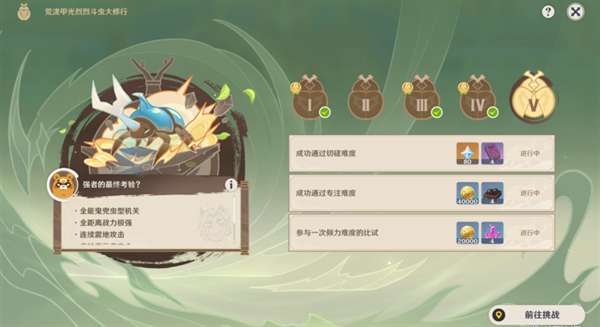 ● 迎接对手的挑战,达成相应条件后即可在活动界面领取奖励。完成更高难度的挑战,可直接获得较低难度模式的奖励。