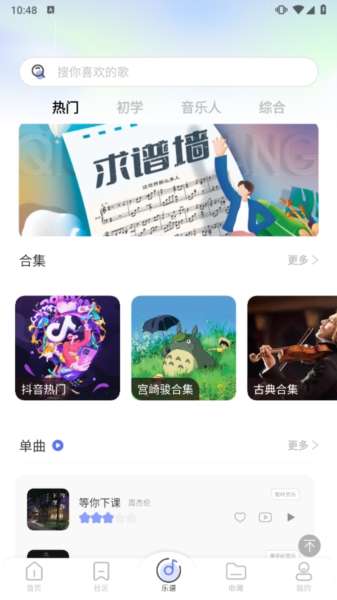 连接好设备后就可以进入乐谱页面,挑选自己喜欢的乐谱。