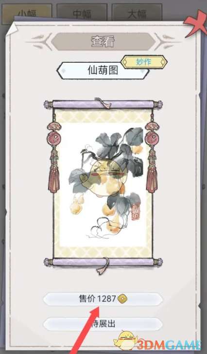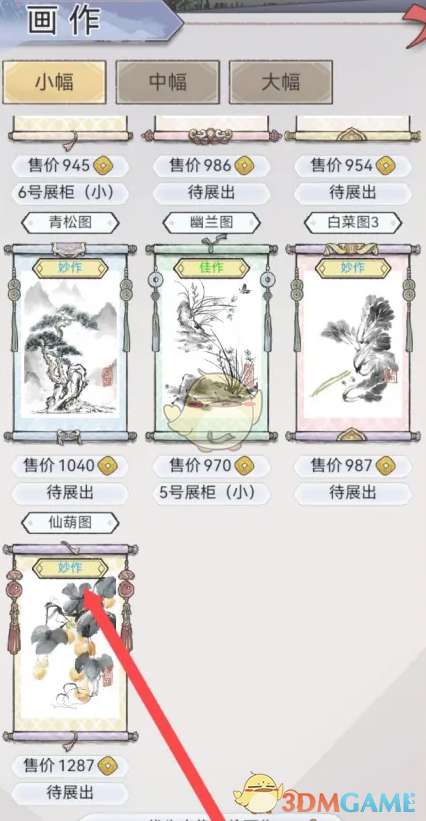 2、进入到画作页面,点击小幅选项,下拉即可找到妙作-仙葫图。