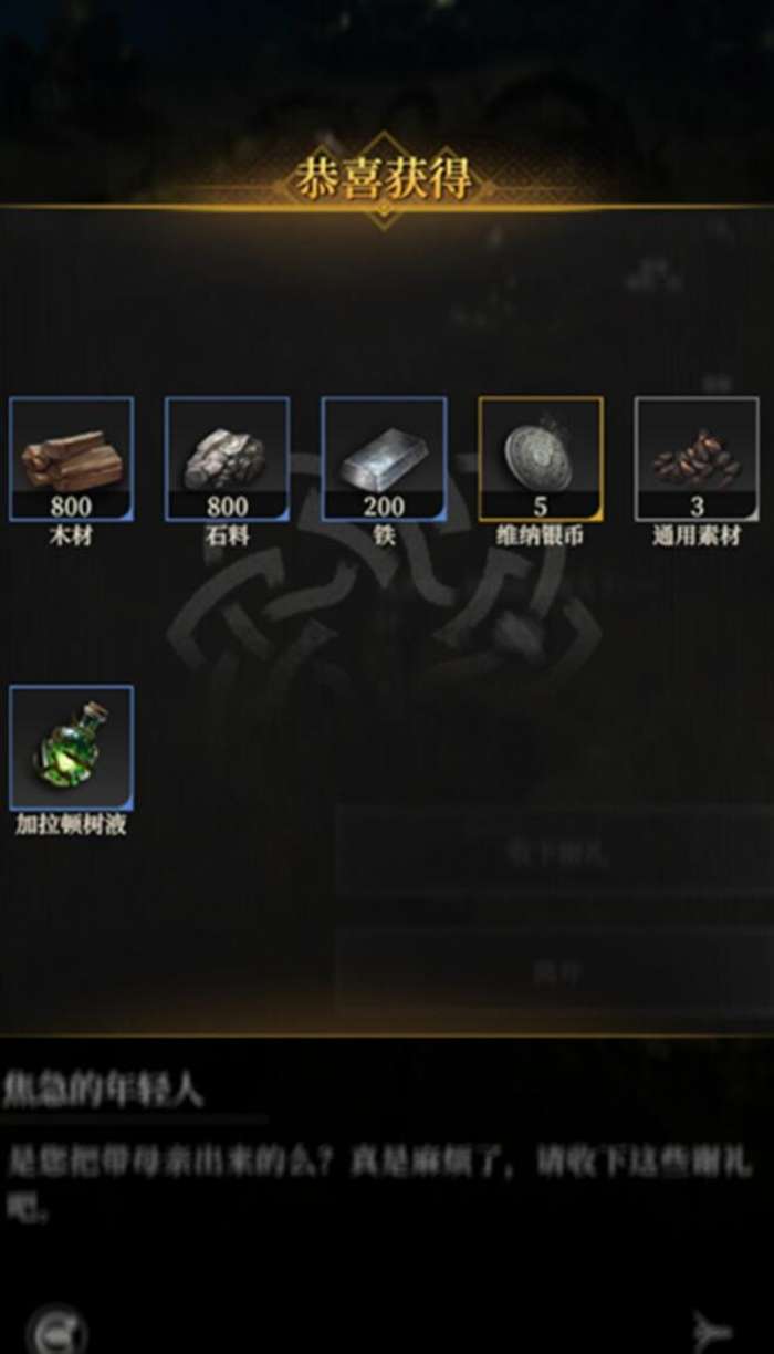 另一个重要事件是寻母任务。该任务的触发点在于地图中一位焦急的年轻人,但要找到他需先清理一片密集的荆棘区域。清理完毕后会遇到一位老人,与其对话将获得线索指引。根据老人提供的方向继续探索,便可找到年轻人并完成任务。完成寻母任务后,玩家将获得经验书与资源包,同时提升相关NPC的好感度,并解锁一段隐藏剧情。