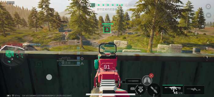 如图所示,这是作为进攻方占领的A点下方的枪位。这个枪位可以由一支小队进行占领、可以进行断点、压力、协助等多种战术配合,这个点作为进攻方可以选择多种枪械。对比守方的纯压制,这个点在进攻方可以打出多种战术配合。