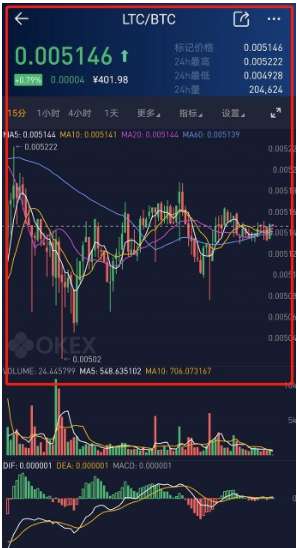 5、点击页面右上角价格旁边的K线按钮,可以进入K线图页面。