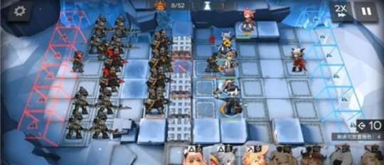 8/52波次,在图示位置部银灰,用于清理最下方的先锋为小火龙创造输出环境,并清理障碍物(此处如不清除障碍物将会出现过多踩过活性源石的纠察官威胁塔露拉血量)。