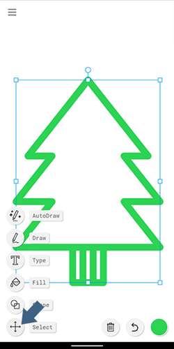 4、接着我们点击左下角工具图标切换为Select工具,并点击画出的树,然后点击右下角将其更改为绿色