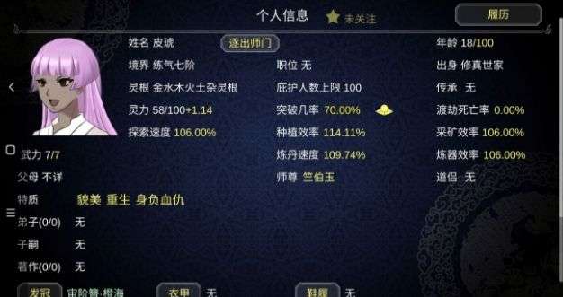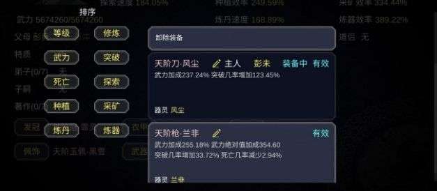 2.装备:貌美骗装备,等第一件地阶装备,或者存档刷宗门大比刷第一件地阶装备。之后宗门大比嫖几件加修炼速度的地阶。(可以卖几件废的,买东西)