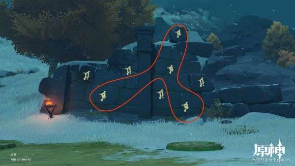(PS:机关踩了后墙上对应的图案就会亮起来,不需要用岩主的石头一直踩着,踩错了机关墙上已经点亮的图案才会变不亮)。