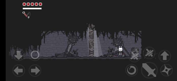出了洞往右走会遇到新手boss,一只士兵老鼠,当然,既然是新手boss,他巨弱无比,差不多只用a两下,防御一下,这个节奏下去没几下就无伤过了。boss会掉落金币和月魄(金币后面npc有用,月魄可以升级属性)金币和月魄死亡会清零。