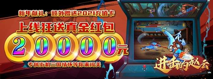 上线送2021充值、等级达到可领最高两万真充!《进击的赵云(送两万真充)》是ARPG的H5游戏,游戏画面风格为三国街机风格。游戏以收集武将,提升武将的战力,挑战关卡,不断提升自身战力勇闯关卡的趣味挂机游戏。本游戏游戏还原了经典的街机战斗场景,蜀魏吴武将以及战斗技能,既能休闲挂机,又能手操释放大招,一流的操作手感,引爆指尖斗战狂潮。