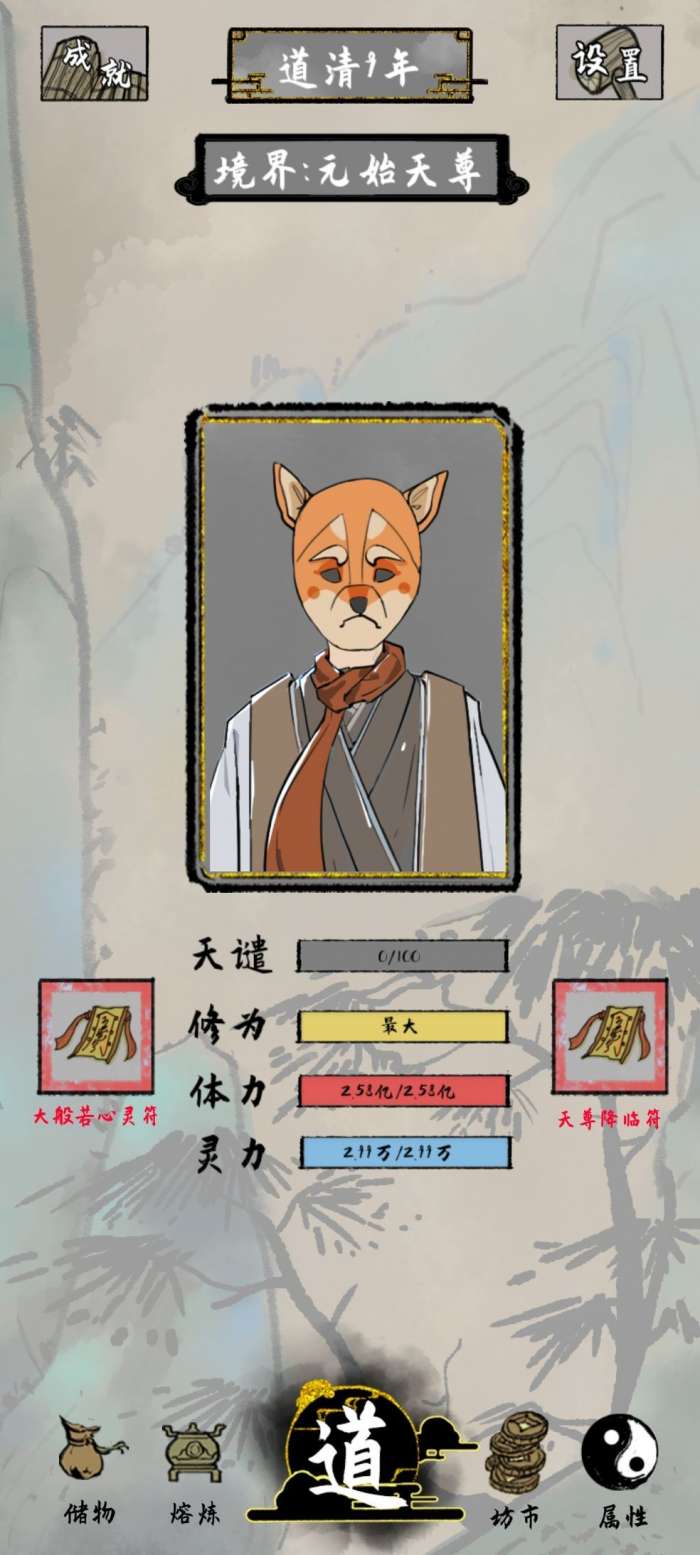 玩了四五天也不知道怎么玩着玩着就天尊了,期间死了好多次,被boss杀死,被心魔杀死,最多的还是寿元不够。怎么说呢总结一下这个游戏吧,嗯。。。很好玩很上头很看人品,装备也并不是品级越高越好。