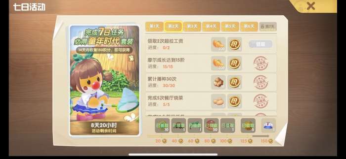 新手目标从第五天开始已经完成的任务就直接显示已完成,无法领取奖励了,任务除了超拉工资我都做完了,积分还是只有120多。