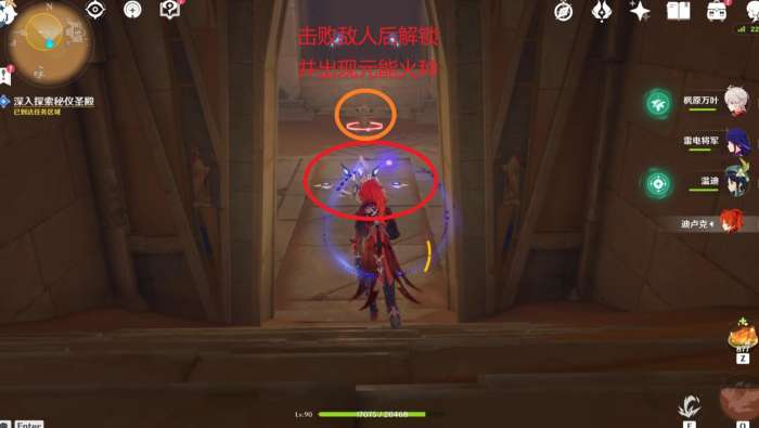 此处左右门进入后,释放元能火种激活两个元能火炬