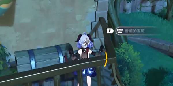 3、到了位置后我们直接爬上该房屋的二楼处,我们就会看见这个在阳台的普通宝箱了,直接上前开启即可。
