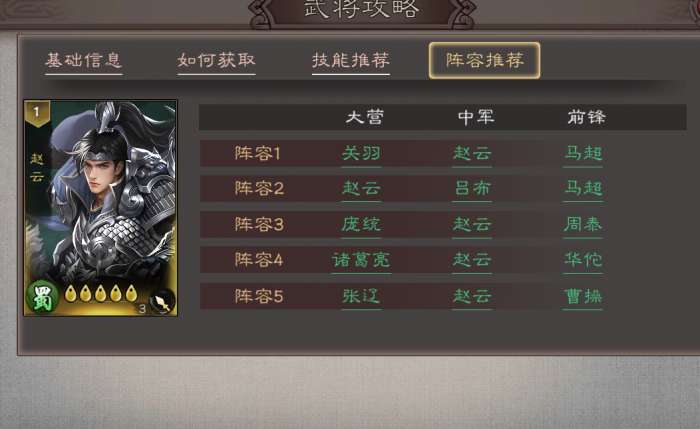 推荐5套实用阵容(赵云站中军):