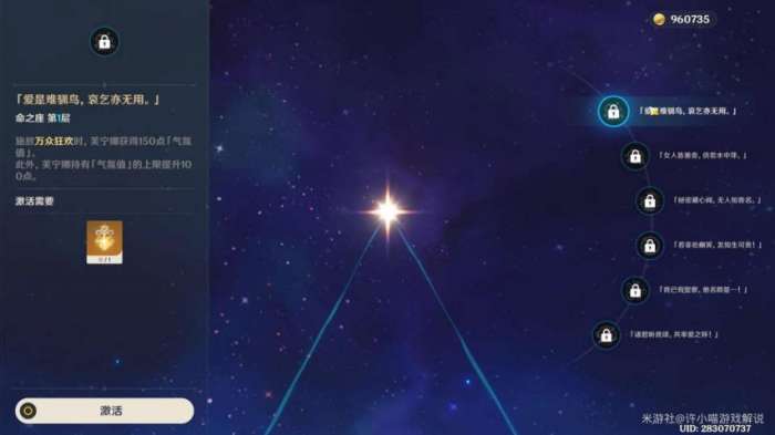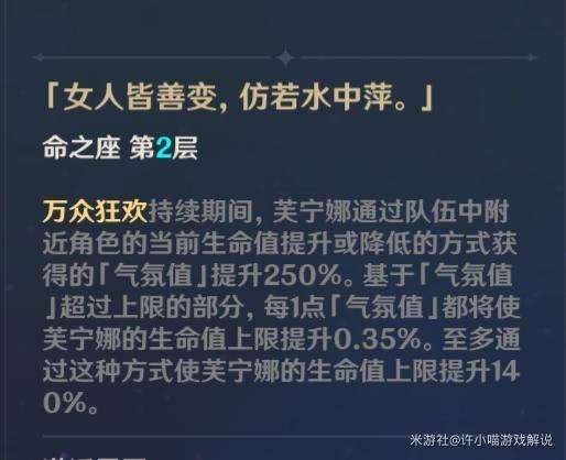 再然后,如果你是跟我一样,纯粹是希望提升芙宁娜,那选择命座的性价比更高一些,因为芙宁娜的专武太专一了,一旦抽到了,芙宁娜不用这把武器,你都不知道这把武器能够给谁用,反倒是命座的提升是肉眼可见的,这时候,你提升命座是最好的,尤其是二命,二命是关键命座,二命以上的芙宁娜, 基本已经达到小毕业的标准了。