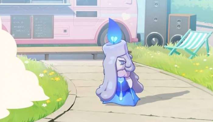 如果大家在游戏当中获取了烛夫人这个精灵的话,其实关于她的外观上面看是非常能够很快辨别出来的,因为她的外观上面就是一个蜡烛一样的形态,这个烛夫人把她辨别为女性精灵的话,上面的蜡烛滴落下来的形状就特别像头发,而且在游戏当中,因为她的元理是黑暗属性的,所以在整体表现上面也是表现的气质比较忧郁,当然最独特的是她头上的火焰散发着蓝紫色的光芒,这种特效跟她的后期特性也有一定相关联的地方。