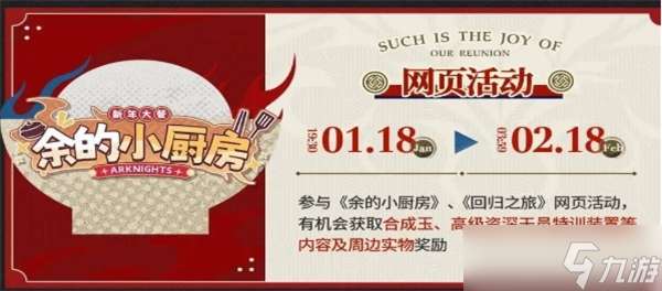 1.活动时间:1月18日-2月18日,参与网页活动《余的小厨房》和《回归之旅》即可获得丰富奖励。