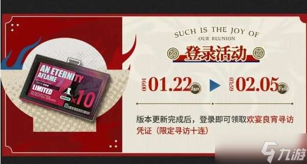 1月22日-2月5日:限定寻访每日赠送一次免费抽卡,共可获得14次免费抽卡机会。